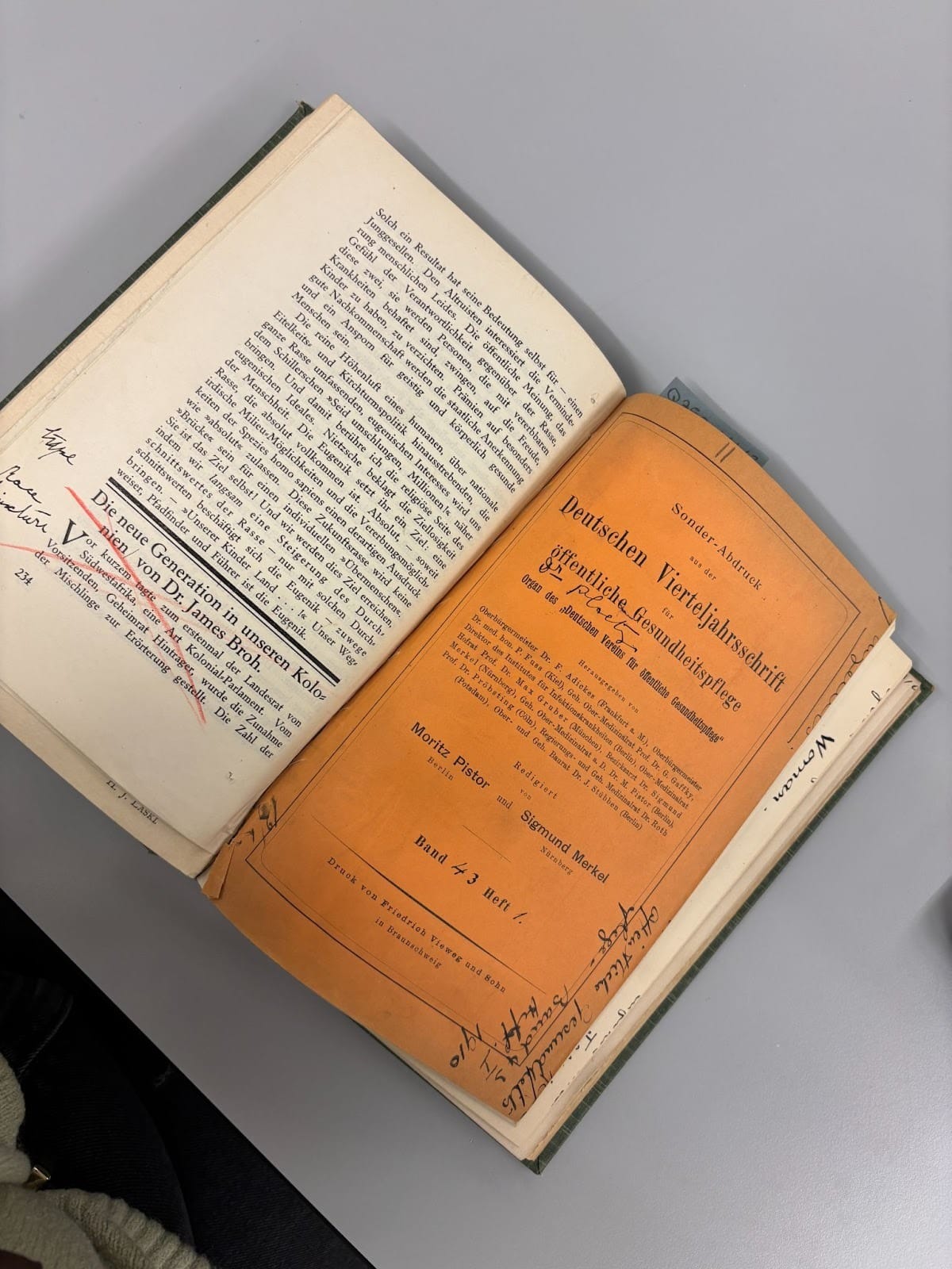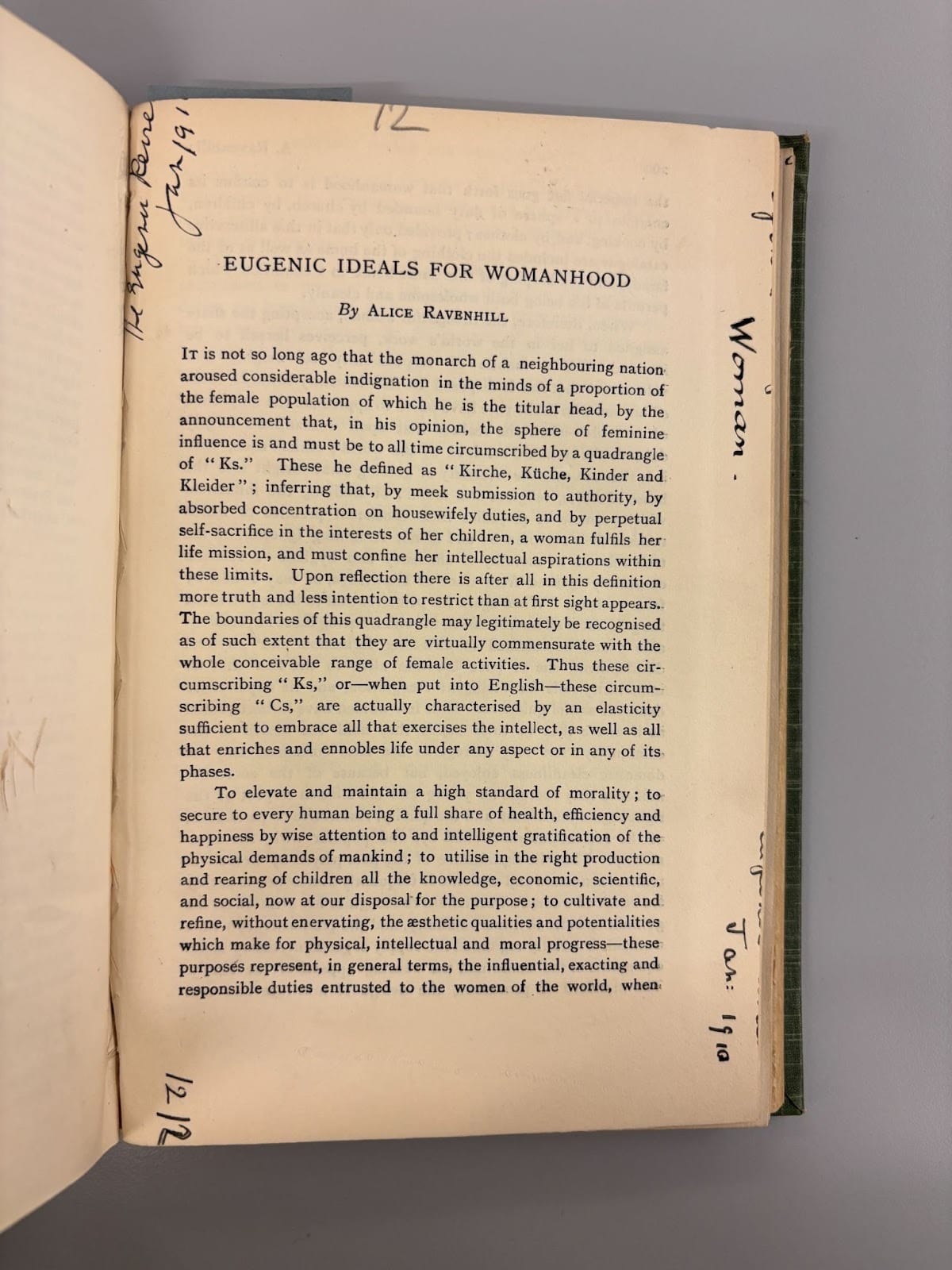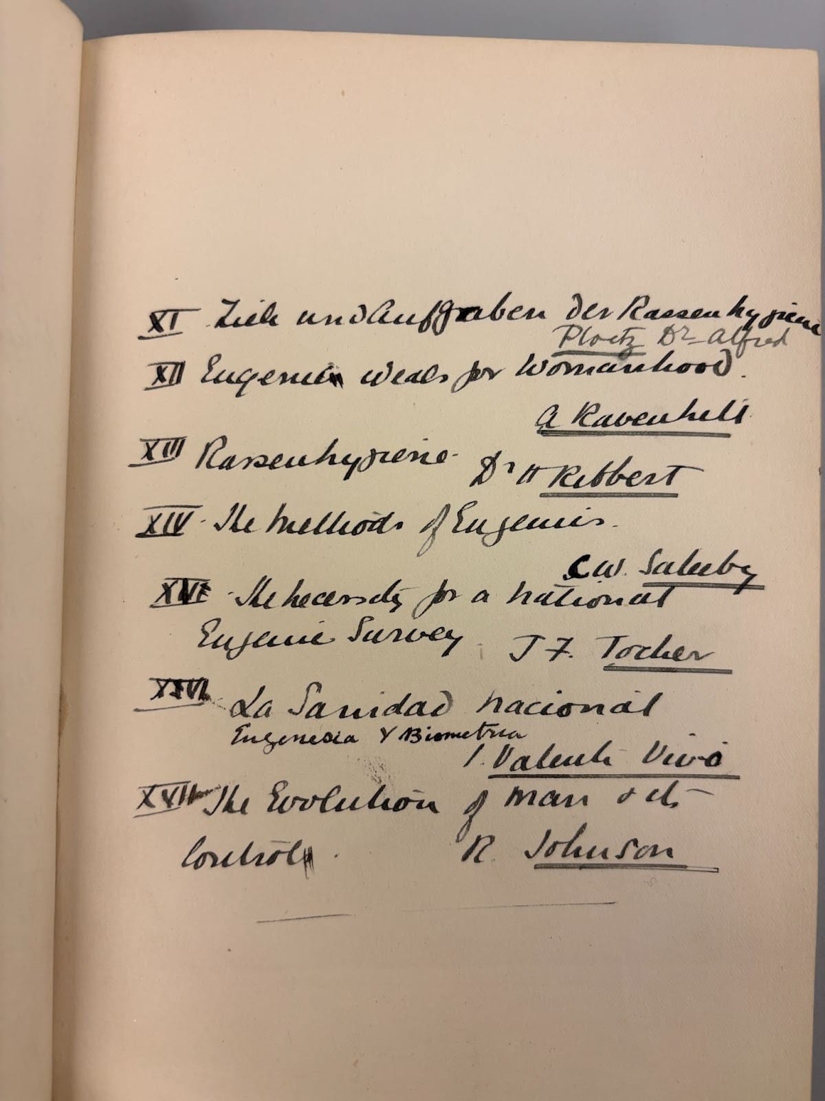 Once, I felt brave enough to make myself an appointment in the rare materials collection so I could showdown with Alice Ravenhill, the ‘mother’ of Domestic Sciences in the UK, which then became the applied discipline of nutrition and dietetics. If you’ll recall, she was an opp – a card carrying member of the Eugenics Society – and we can trace the troubling ways nutrition and dietetics privilege a certain type of body and way of eating to these sentiments of ‘population hygiene’. While the contents of the book were deeply troubling, the actual book itself was incredible to see; different articles and journals, some in different languages, bound together with a hand written index. Here are some photos I took; looking the book up online you’d never be able to tell what the book was like irl.